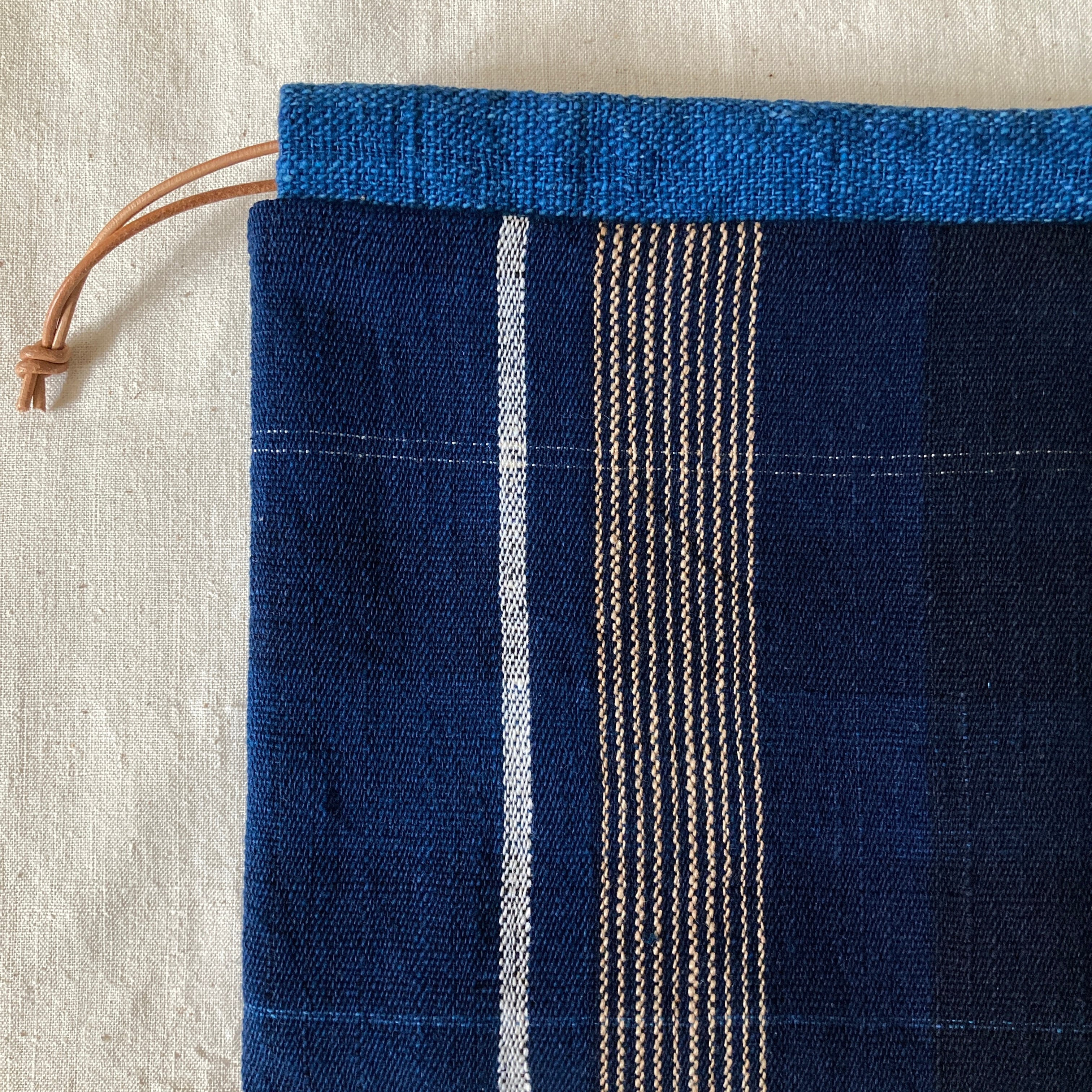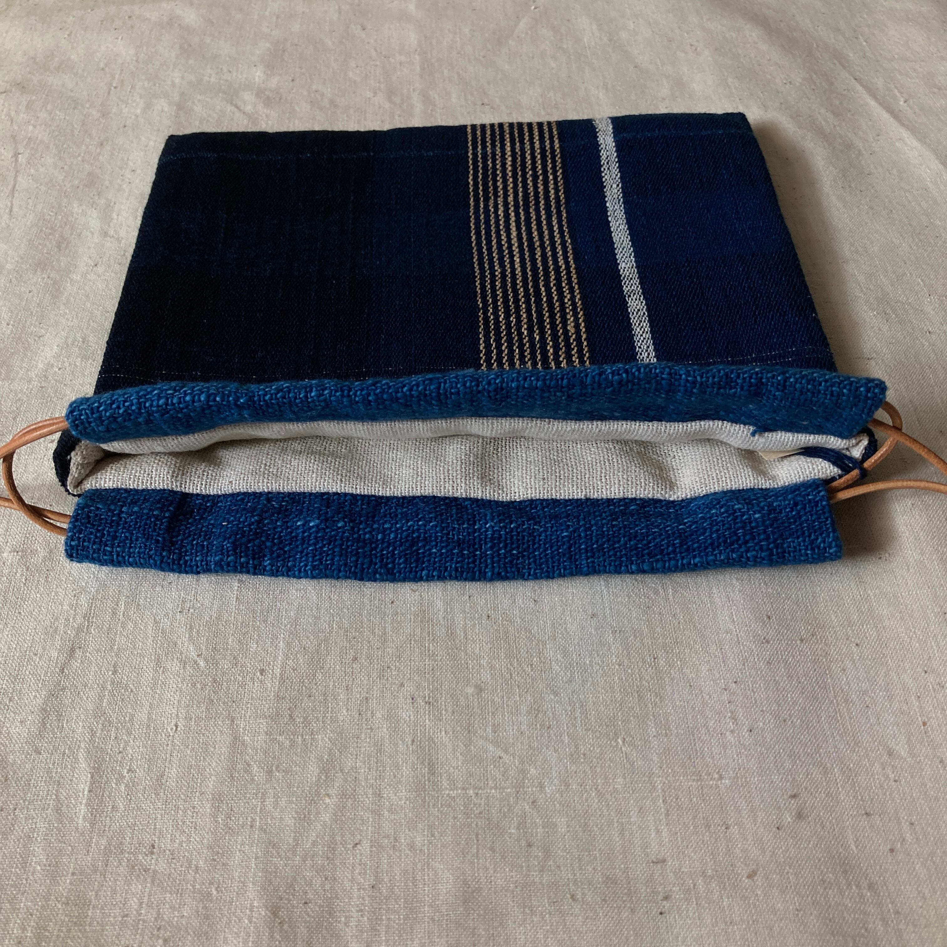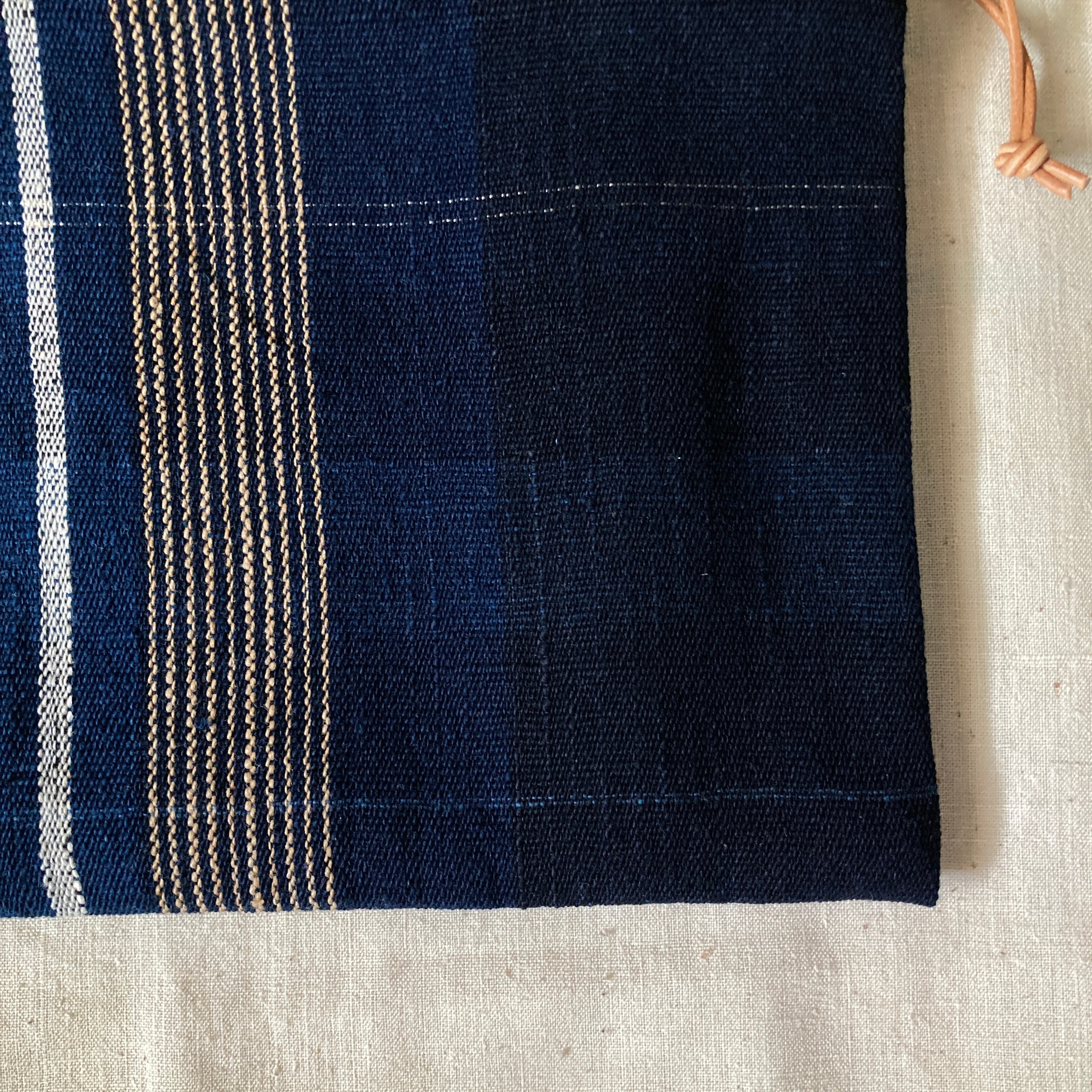 ・裏布はインドの手紡ぎ手織り綿布、紐通し口はラオスの藍染手紡ぎ手織り綿布を使用しています
