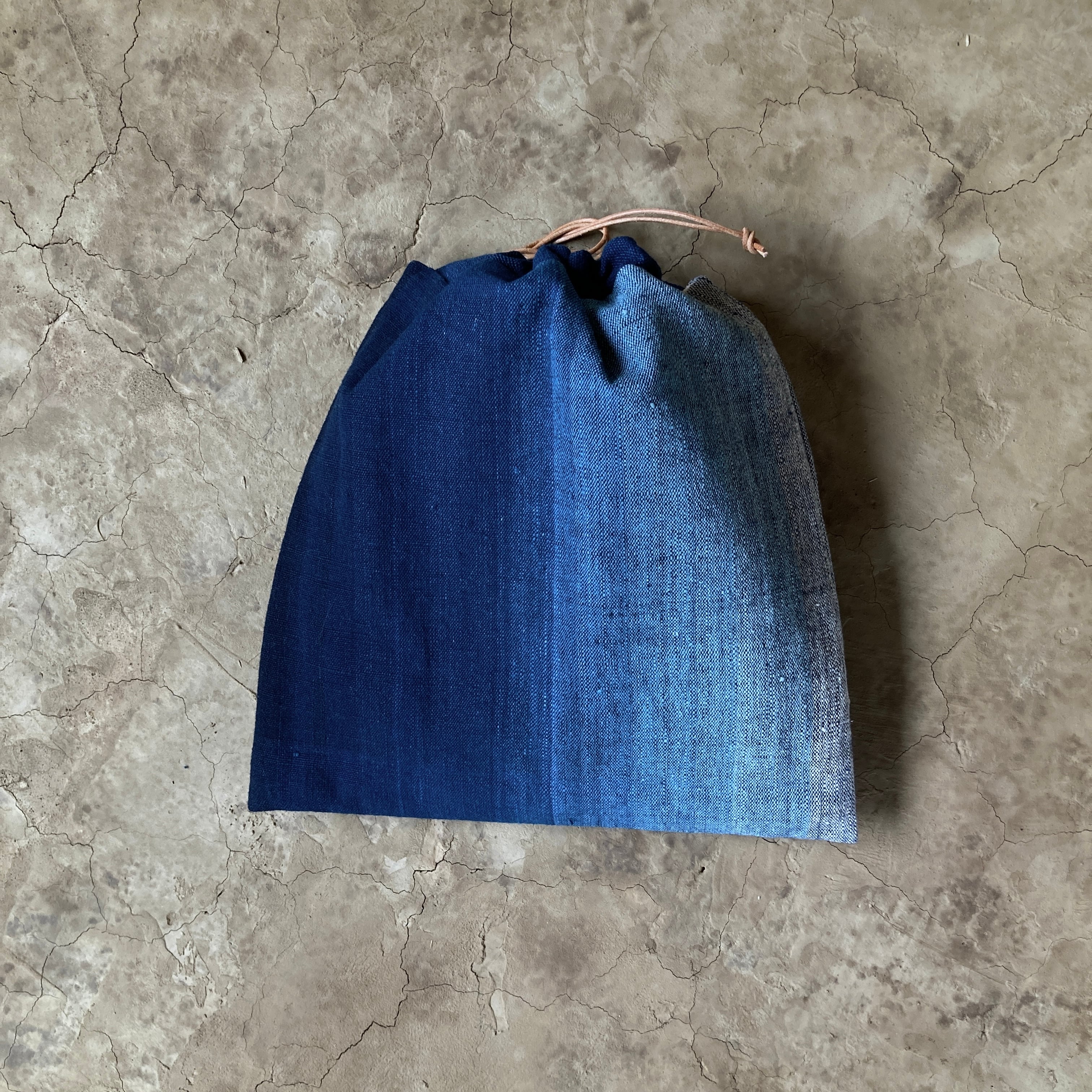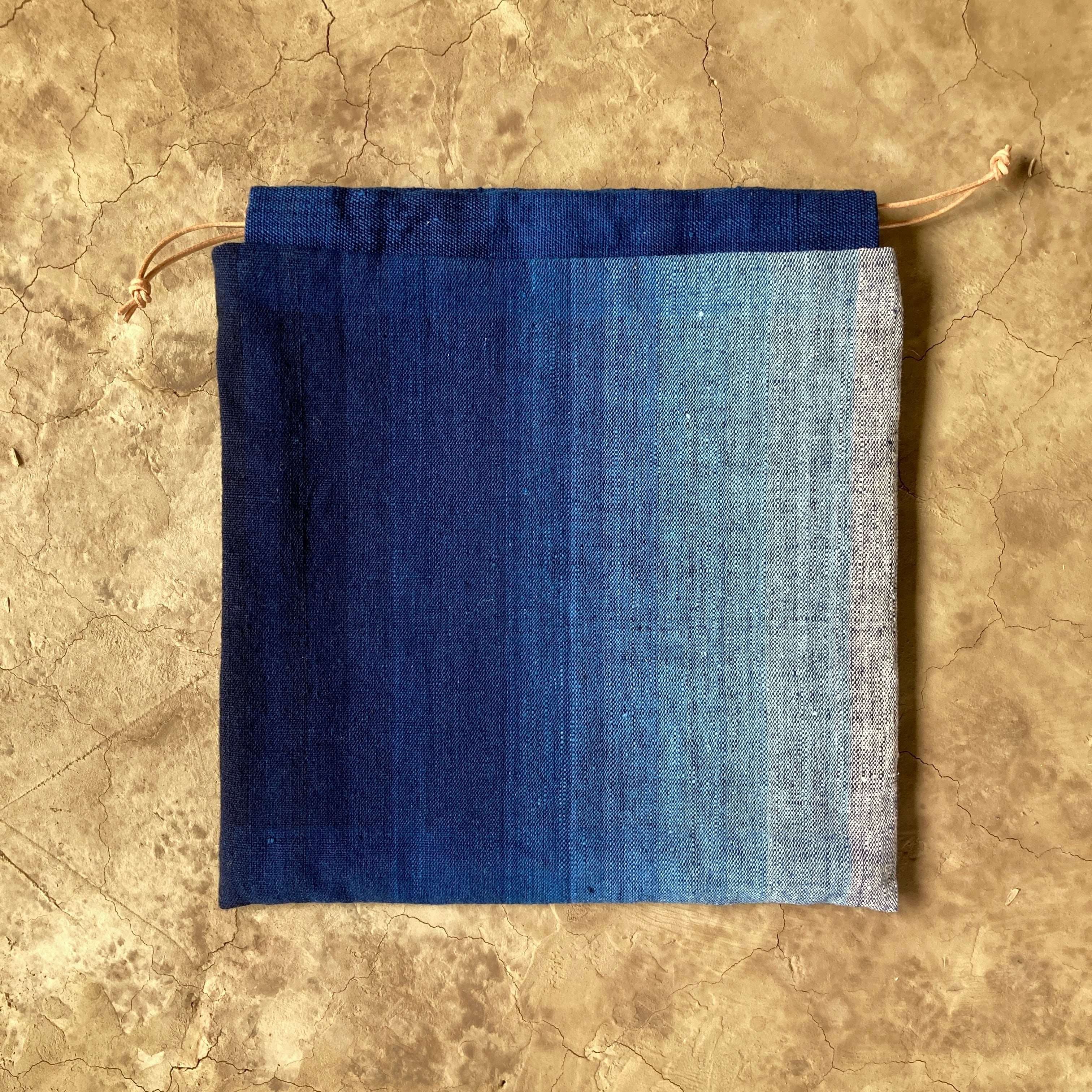 巾着 手紡ぎ木綿・手織り 深藍